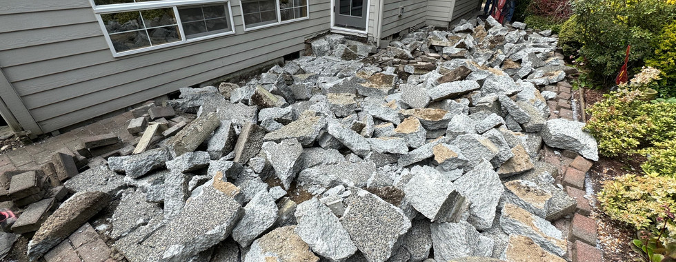 PROJECT SCOPE: The goal of this project was to upgrade the existing aggregate patio. The concrete step at the back door had sunk almost 3" and the patchwork mix of old red brick and aggregate made no design sense at all. The customer also wanted to make the backyard feel bigger. We were able to solve all of the issues with a clean classic paver design that utilized pavers in a running bond pattern. The larger style pavers and long lines gave the perception of a larger patio within the original space. New foundation vent wells were installed to replace the rotting wood vent wells. Portions on the underground drainage were also repaired and repalced where necessary.